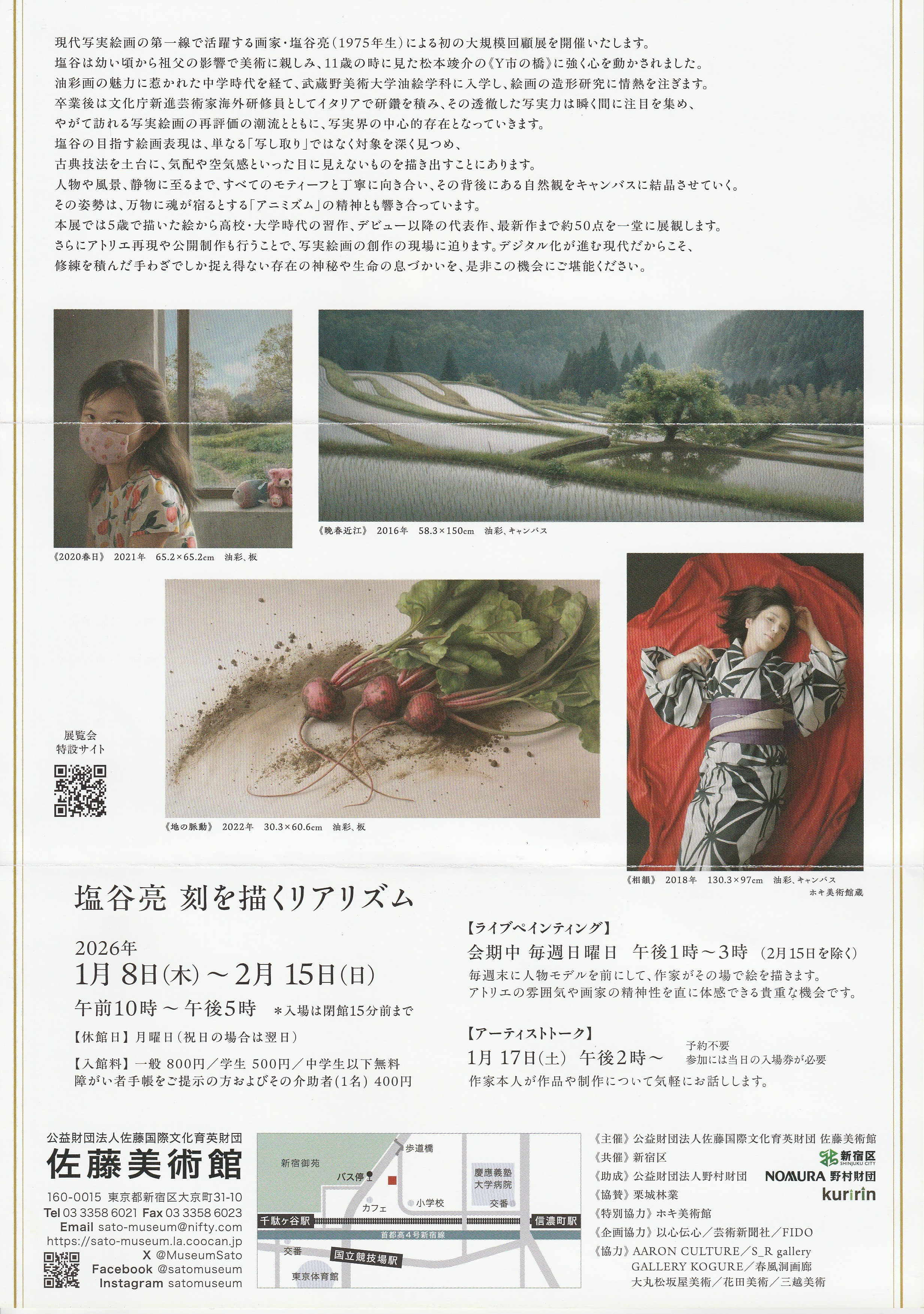 塩谷亮 刻を描くリアリズム 2026 1/8thuー2/15sun 佐藤美術館 塩谷亮 2008年 美術・絵画 刻を描くリアリズム 2026年 1月8日(木)~2月15日(日) 佐藤美術館 東京都新宿区大京町31-10